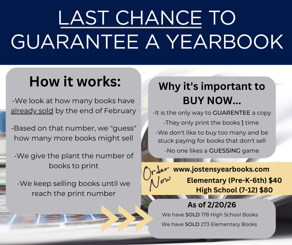 Parent Planning Meeting for the 2026-2027 school year is tonight from 5-7 PM in the high school library. Please stop by if you are able.